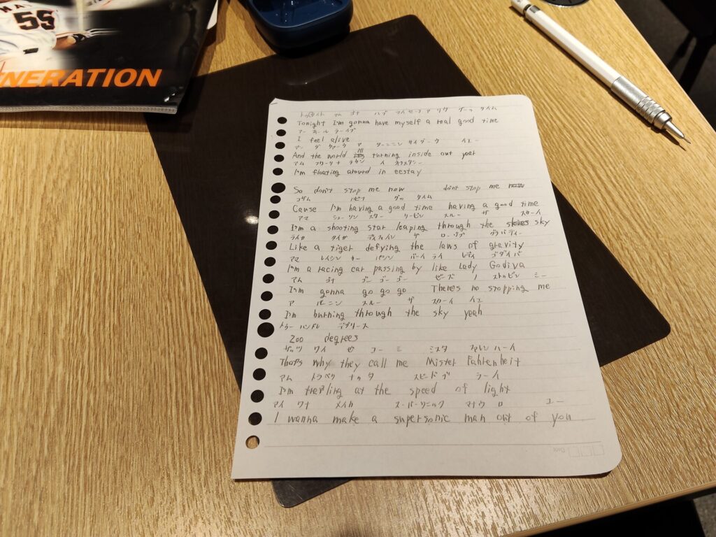 歌詞を書き出す事で、とりあえあずは、歌えるようになったが、単純に高音が出ない。